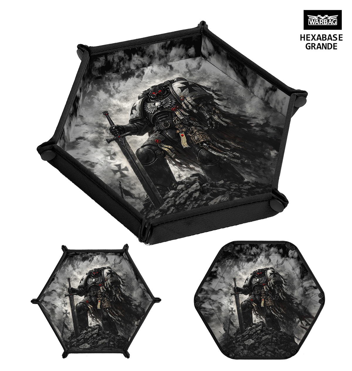 Ya están disponibles en WARBAG los nuevos diseños para bolsas para dados y bandejas tiradados para tu ejército de Templarios Negros. Se añade un nuevo modelo con la insignia y otro inspirado en Sigismund, aunque recuerda que siempre puedes modificar los colores para que coincidan con los de tu ejército!!!