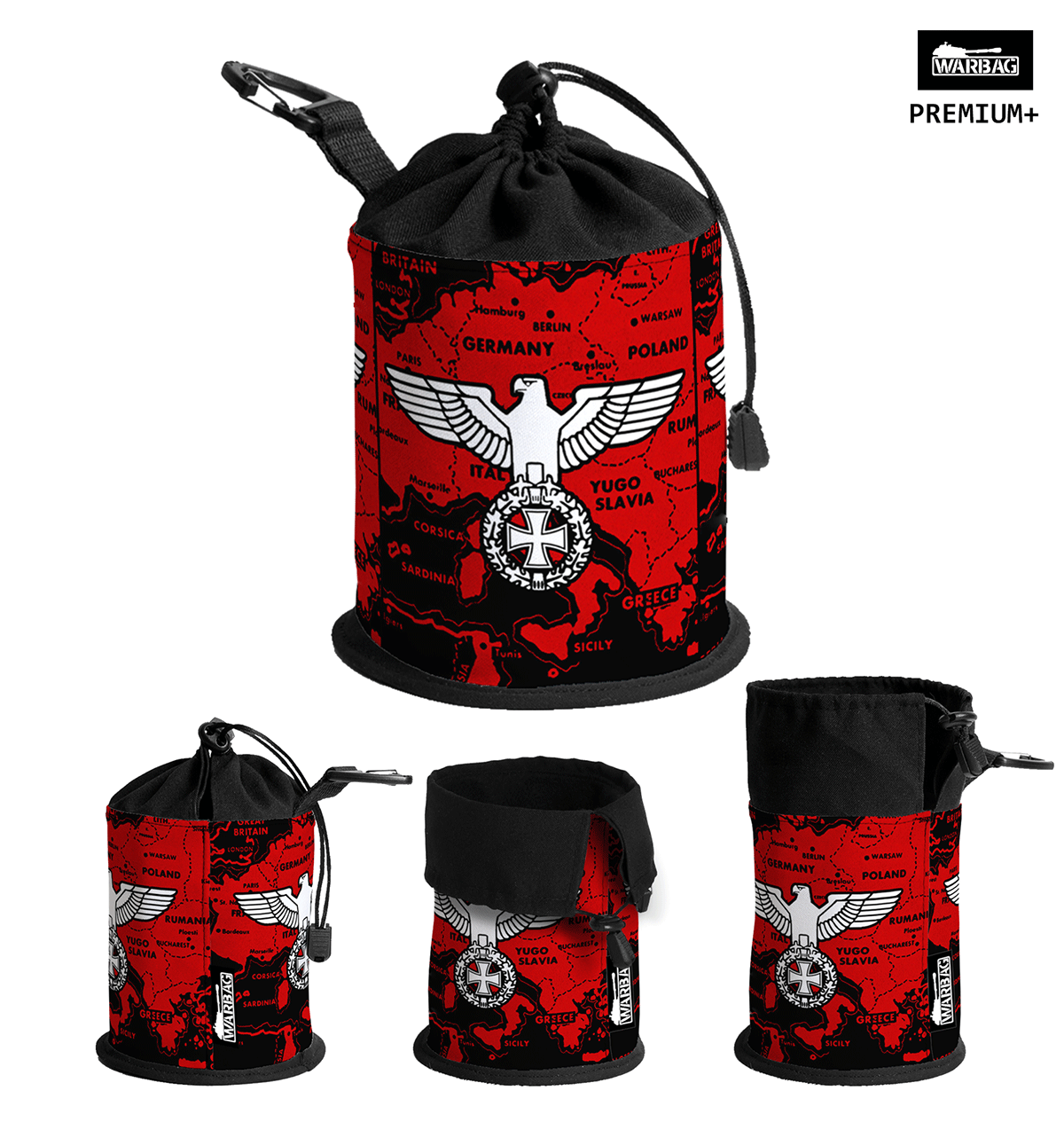 Las bolsas para dados PREMIUM “Parteiadler – Europa”, de formato tubular de WARBAG están 100% fabricadas en España por nosotros, con los mejores materiales para darle fiermeza estra y mucha resistencia a la bolsa. La sensación es de firmeza y tiene una gran capacidad para llevar tus dados. No es la típica bolsa fina y sin forma, las bolsas para dados de WARBAG están diseñadas para durar, proteger y lucir bien.